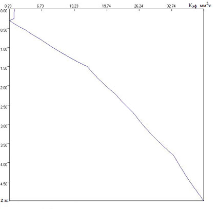 вертикальной эффективной температуропроводности от глубины z м